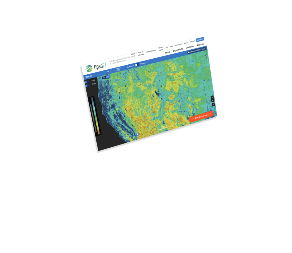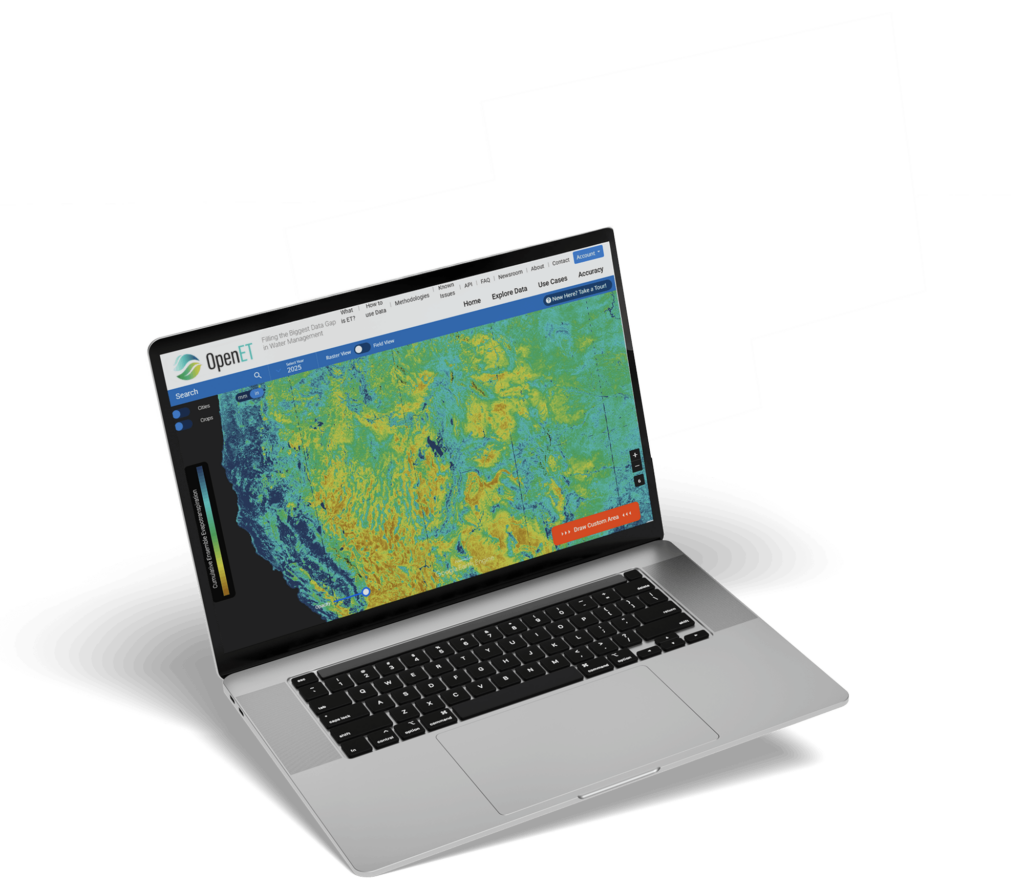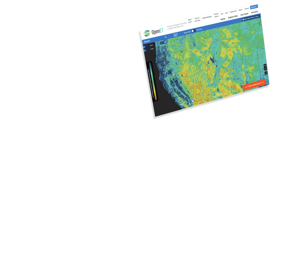 Developed by leading experts in partnership with farmers, water managers, and policymakers, OpenET delivers transparent, field-scale ET data to support real-world water challenges.